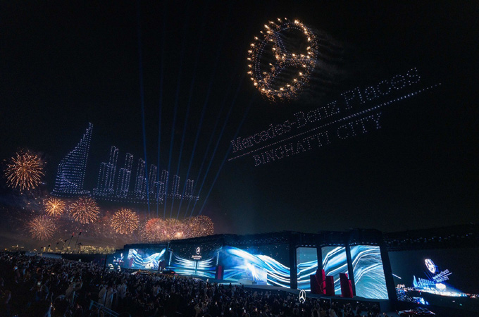 A sweeping drone show illuminated the Meydan skyline, followed by a laser projection across Nad Al Sheba tracing the outline of the twelve-tower formation, before a massive fireworks finale crowned the night symbolizing the scale and ambition of the vision.