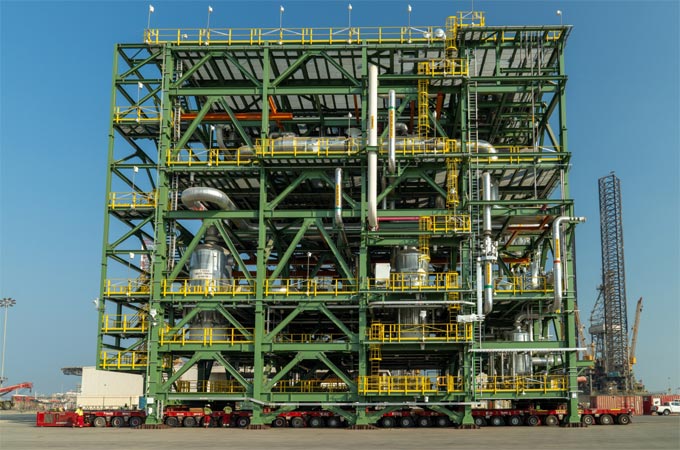 The heaviest and tallest unit – a process gas cooling module – weighed 2,464t and measured 38 metres long, 23 metres wide, and 32 metres high.