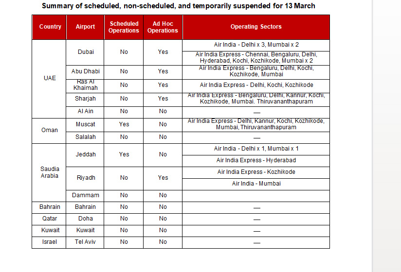 These Indian carriers continue to operate their respective scheduled services to and from Saudi port city Jeddah and Omani capital Muscat, with six flights to and from Jeddah. Air India Express will be launching 12 scheduled flights to and from Muscat.