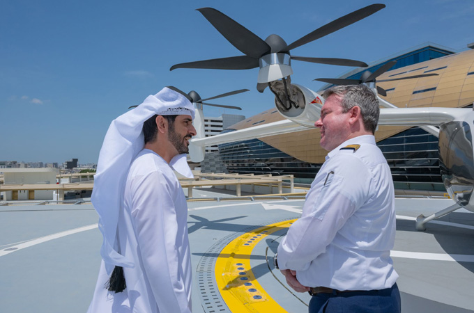 Upon arrival at the station site, Sheikh Hamdan was received by Mattar Al Tayer, Director-General and Chairman of the Board of Executive Directors of RTA, Mohammed Abdulla Lengawi, the Director-General of the Dubai Civil Aviation Authority; Duncan Walker, CEO of Skyports Infrastructure, and Anthony El Khoury, General Manager of Joby Aviation.